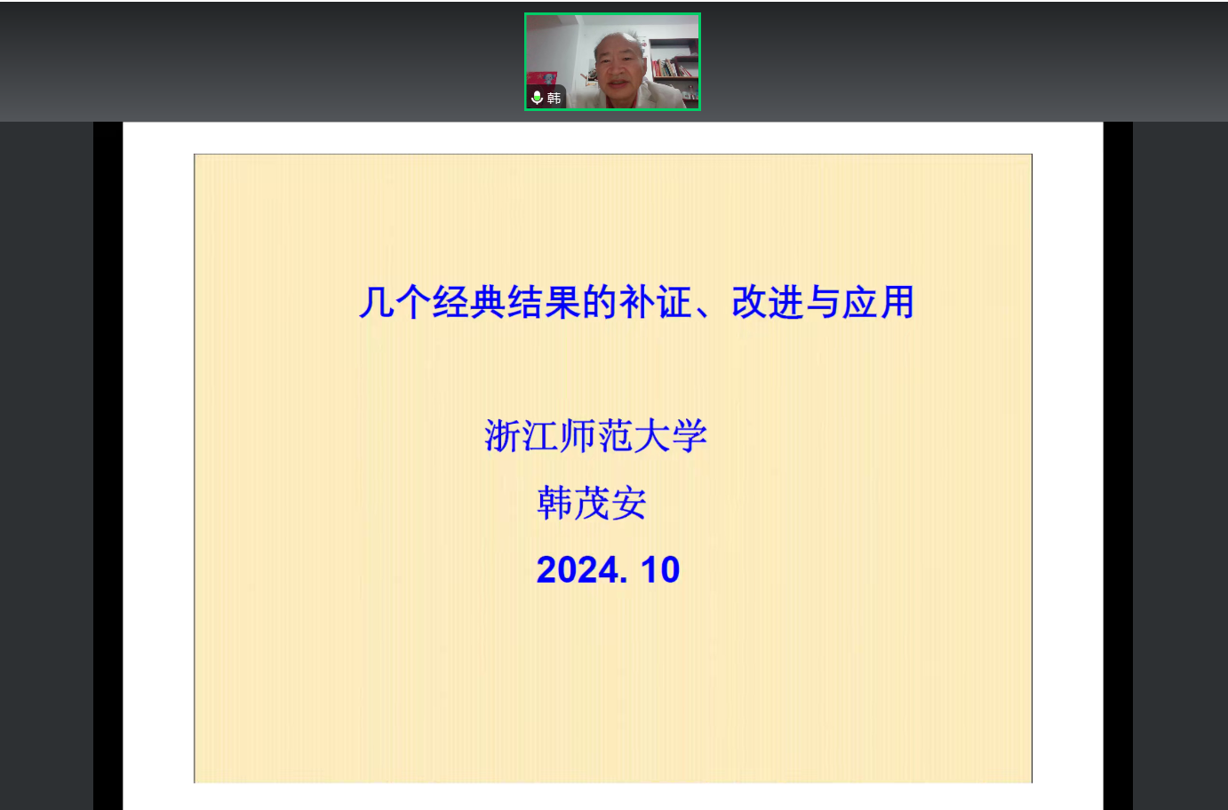 10月11日晚上,应bv伟德国际体育官方网站邀请,知名学者韩茂安教授做了题为《几个经典结果的补正、改进与应用》的线上讲座,讲座由学院院长周钰谦教授主持,学院部分教师和研究生在线上参加了本次讲座。