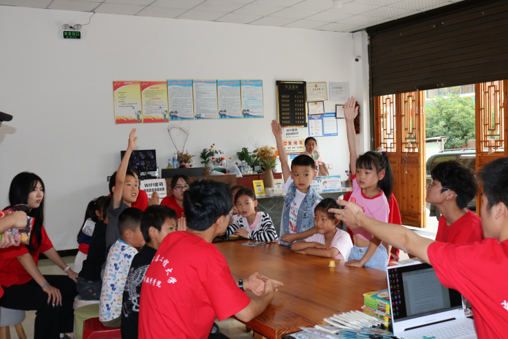 与此同时,同学们与当地小朋友建立起深厚的友谊,并为他们组织策划了儿童读书会和趣味数学活动,活动吸引了众多小朋友及家长参与,现场气氛热烈温馨。同学们通过讲述屈原、牛顿、华罗庚等多位人物故事,激发小朋友们对历史的兴趣;同时巧妙将数学原理和趣味游戏融合,设计多个互动环节,让小朋友们在轻松愉快的氛围中感受数学的魅力与乐趣,培养他们对科学的热爱与探索精神。